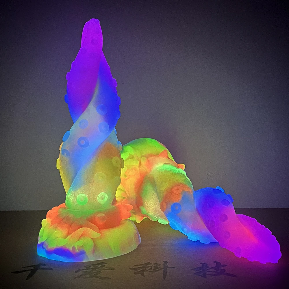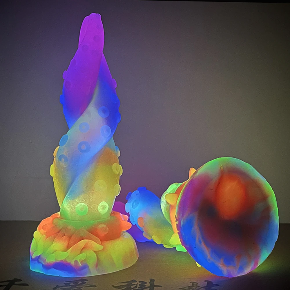 Adora Luminous Dildo With Suction Cup Multi Color Silicone Glow in Dark Anal Plug Twist Octopus Leg Design Sex Toys For Women